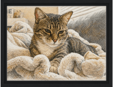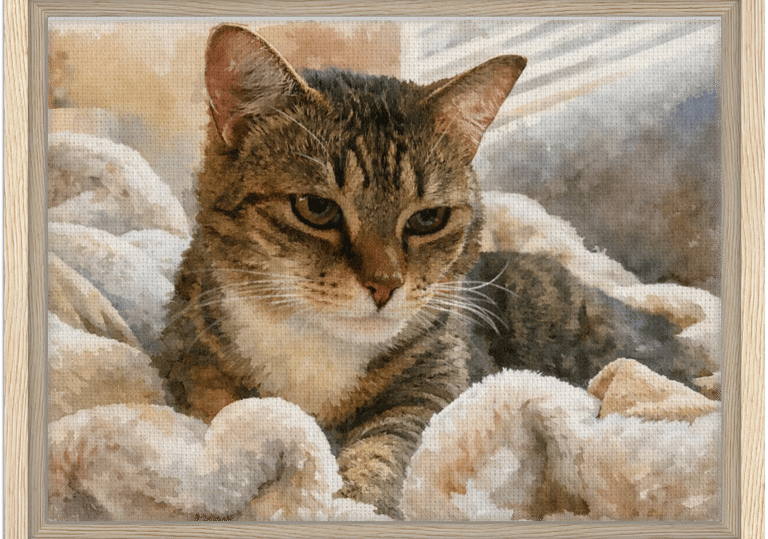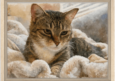 Find a favorite photo (or two) of your furry friend that you want transformed in a framed piece of custom art. Upload it using our Order Form.